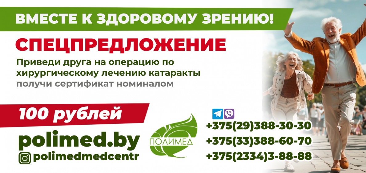 Пройдите операцию по хирургическому лечению катаракты в медицинском центре «Полимед» и получите Купон «Вместе к здоровому зрению»! Этот купон дает вам право на получение Сертификата номиналом 100 рублей.